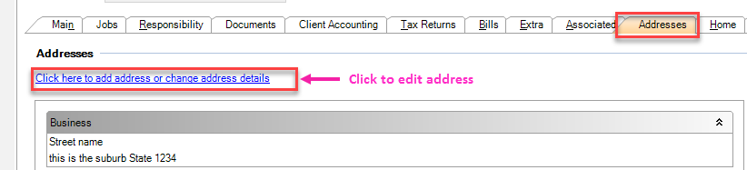 If a green padlock can be seen next to the business address, the address is being supplied by the client details noted on the address tab in client details.
