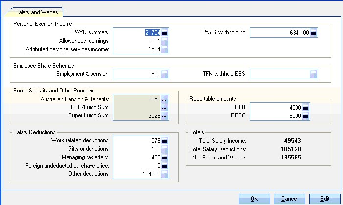 PAYG Summary: Enter the total of the gross salary income that is indicated on the PAYG Summary. This figure corresponds to the Gross Salary field on an individual tax return.
