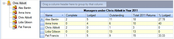 Clicking anywhere in a row displays the grid of returns for the employee named.
