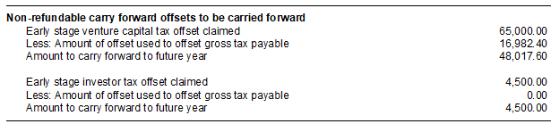 To record any share of ESCVLP tax offset distributed to the company from a partnership or trust, you must enter these details in the: