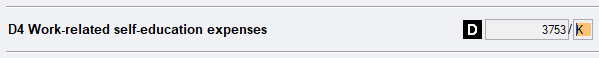 Enter the self-education expenses under the correct category (for example, A, B, C, D and E, because when working out what you can claim, certain costs are reduced by $250).