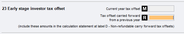 The amount at label M filters through to the Calculation Statement:Non-refundable carry-forward tax offset worksheet (ncf). The sum of all offsets in the ncf filters through to label D in the main return.