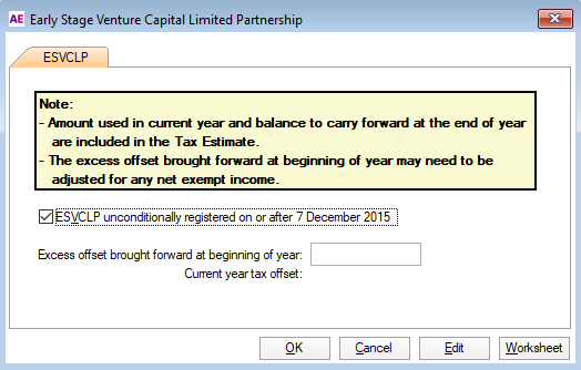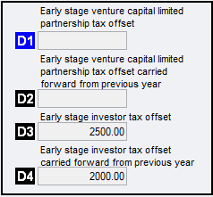 To record any share of ESCVLP tax offset distributed to the company from a partnership or trust, you must enter these details in the:
