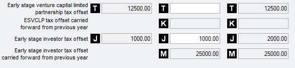 If the Trust has received a share of ESVCLP tax offset as a result of a distribution from a partnership or another trust, you must enter this in the Distributions from partnership worksheet (dip)or the Distributions from trusts worksheet (dit). We'll filter the share of ESVCLP tax offset through to the item 52 esv worksheet to be included in the Offset total available for distribution. When created in the esv worksheet, you'll recognise the share of ESVCLP tax offset by the Type code D.