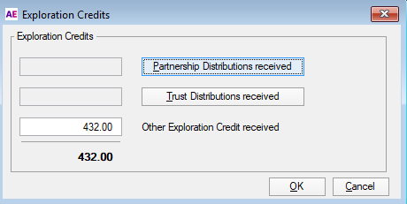 Calculation statement: E4. Amounts are filled from the 2 worksheets shown. A free fields is provided for manual data entry.