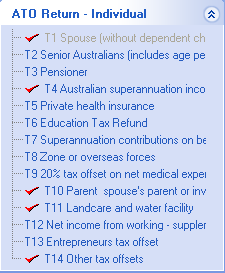 The list offers the worksheets most commonly used for the return type being processed. The same considerations apply to this panel as to the ATO Schedules panel. For a complete list select Preparation > Schedule.