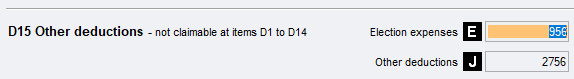 If you have Other expenses at D15 that you've not claimed at any other of D1 to D14, you must enter those expenses in this worksheet to complete the ATO's Deductions schedule (DDCTNS)