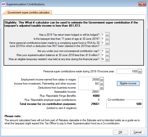 you could be entitled to a the full Government co-contribution of $500 if your taxable income is less than $37,697.