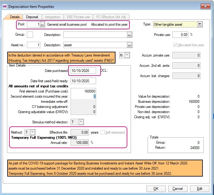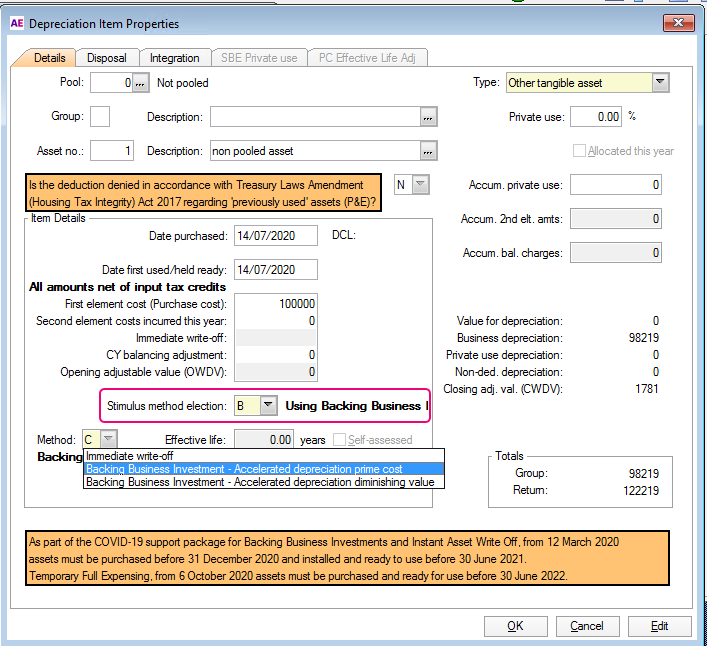 Applying 2021 changes to depreciation in tax