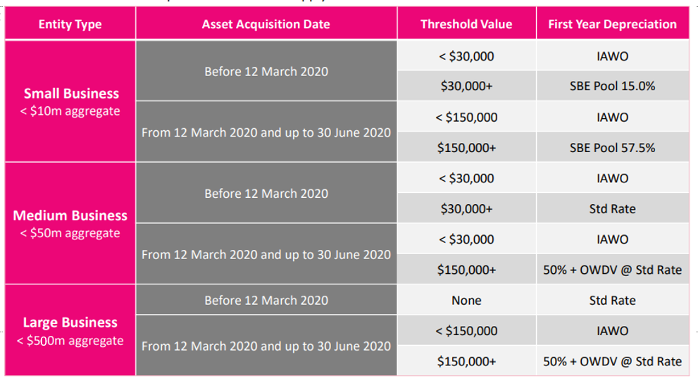 The instant write-off amount has increased to $150,000 for assets purchased on or after 12th March 2020.