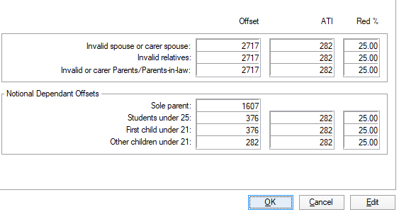 • the maximum Adjusted Taxable Income (ATI) which a dependant may derive before the offset cuts out