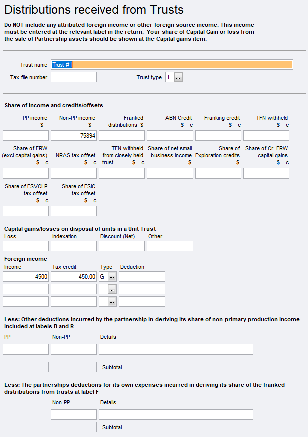 - Partnership or Trust: item 8: labels A, B or R—Primary production, Non-primary production or Franked distributions from trusts
