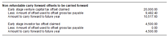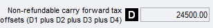 As there is also an offset claimed for the Early stage venture capital scheme, the sum of the two is pre-filled at label D - Non-refundable carry forward tax offsets.