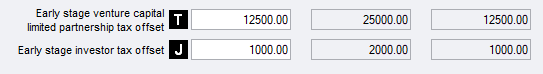 Click the Worksheet button and enter the details of the ESVCLP acquisition. Enter any excess offset carried forward from the previous year, adjusted in accordance with Div 65 of the ITAA 1997 for the effects of any net exempt income (foreign or Australian).