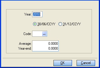 - End Date: There are two radio buttons: 30/06/CCYY refers to the financial year; 31/12/CCYY refers to the calendar year. The default is the financial or income year.