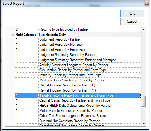 The Select Report screen opens. Scroll to the list of Tax Reports only for any tax year from 2012 onwards.