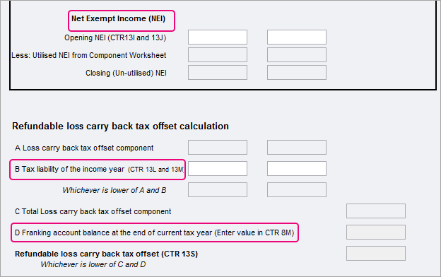 Loss carry back tax offset component: This is a calculated field. Tax loss carried back excluding NEI * Company tax rate %