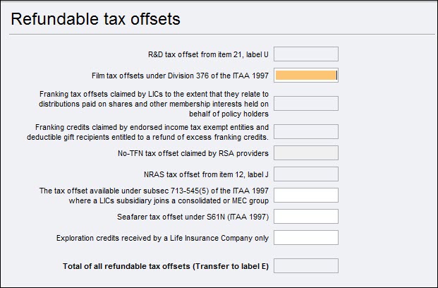 This worksheet provides both for that integration and for the entering of other rebates and tax offsets calculated or received by the company.