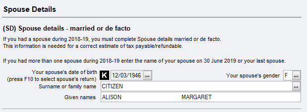 If you had a spouse during the current income year, you must complete Spouse details. If you do not know the spouse's taxable income then you should make a reasonable estimate.