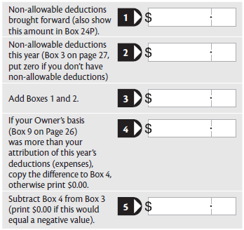 owner’s basis (Box 9) is more than their attribution of the deductions (expenses), you won’t need to complete Box 24O—go to Non-allowable deductions.