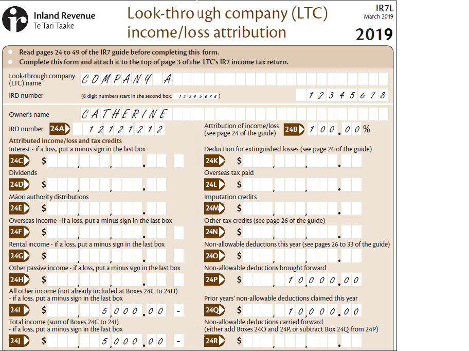 non-allowable deductions brought forward from last year (copy the amount from Box 24R Non-allowable deductions on your IR7L 2018 form into Box 24P on your IR7L 2019 form) and/or