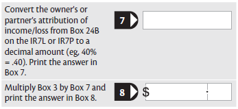 Boxes 4 to 9 must be completed for each owner or partner using their information from the IR7L or IR7P.