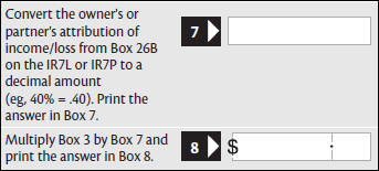 Boxes 4 to 9 must be completed for each owner or partner using their information from the IR7L or IR7P.