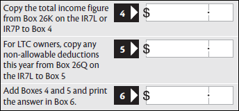 Copy the amount from Box 9 to Box 26L on the IR7L or IR7P form.